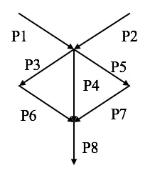 (Using Semaphore primitive to write pseudo code, make it right and concurrency.) There are processes and their execution order must satisfy the following DAG. For example, P3 must be executed after P1 and P2, while P6 must wait for P3.